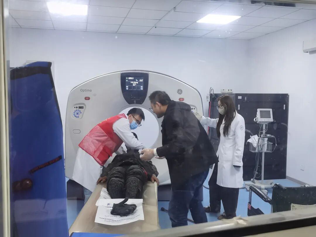 这份无助即刻点燃了众人的爱心。同在导医台带班的病案室副主任张彩红见状,快步上前与王志超一同安抚老人。交谈中他们发现,老人因胸部损伤剧痛难忍,连独立站立都异常困难。两人没有丝毫迟疑,迅速找来轮椅,小心翼翼搀扶老人坐下,护送途中,张彩红敏锐察觉到老人"无亲属、无联系方式、无确切住址"的"三无"特殊情况,深知此事刻不容缓,立即将情况上报医务科。医务科负责人张丰经接到消息后高度重视,第一时间安排成仲阳赶赴现场。抵达后,成仲阳与王志超、张彩红组成临时帮扶小组,合力将老人送至急诊科,并协调完成CT检查。