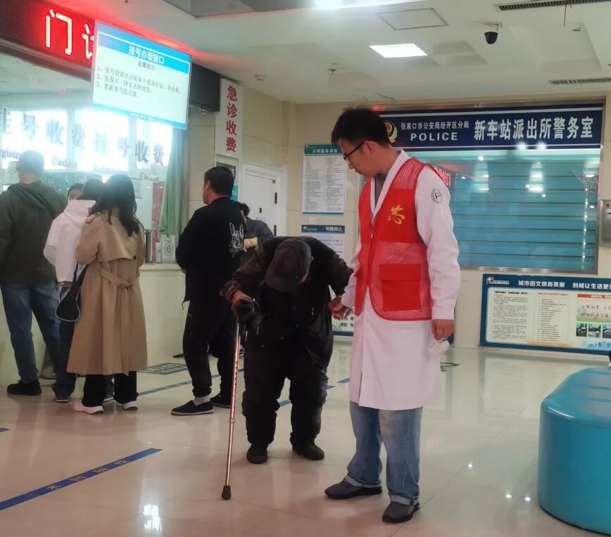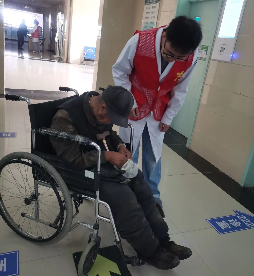 当日在志愿岗服务的骨伤科医生王志超,被一位特殊的八旬老者牵动了目光。82岁的老人拄着拐杖颤颤巍巍前行,旧衣衫沾着污渍,因便失禁散发的气味让周围人群下意识避让。没有亲人陪伴、没有通讯设备,连准确家庭住址都无法说清,老人枯瘦的手紧紧攥住王志超的手腕,浑浊眼眸里盛满的痛苦与无助,瞬间击中了在场每个人的心。
