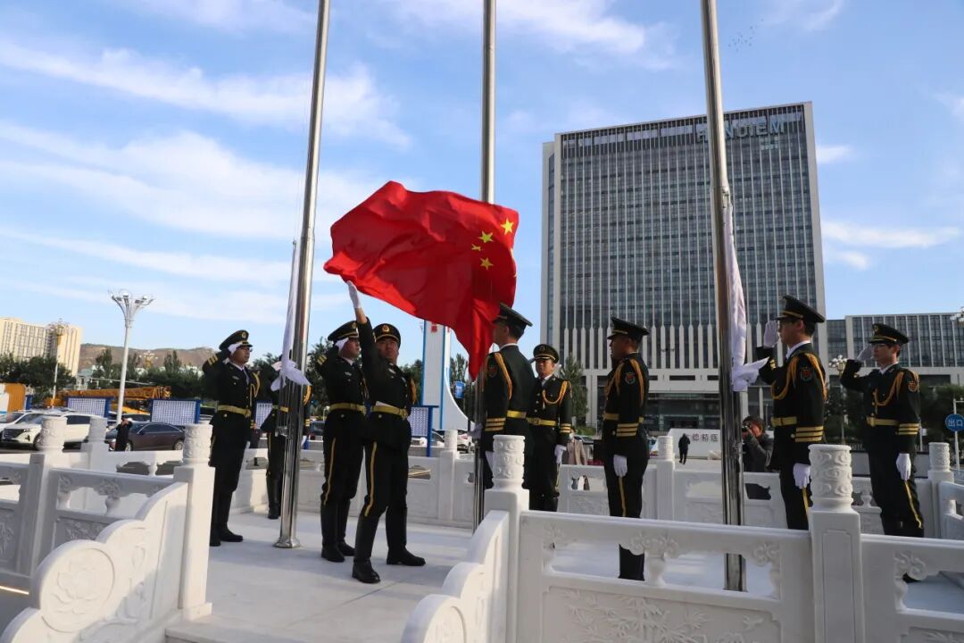 仪式伊始,国旗护卫队员迈着铿锵有力的步伐,高举国旗整齐列队正步走向旗台,伴随着《义勇军进行曲》激昂的旋律,五星红旗缓缓升起,全体人员肃立行注目礼。鲜艳的红旗在晨光中迎风招展,爱国情怀在每个人心中激荡。